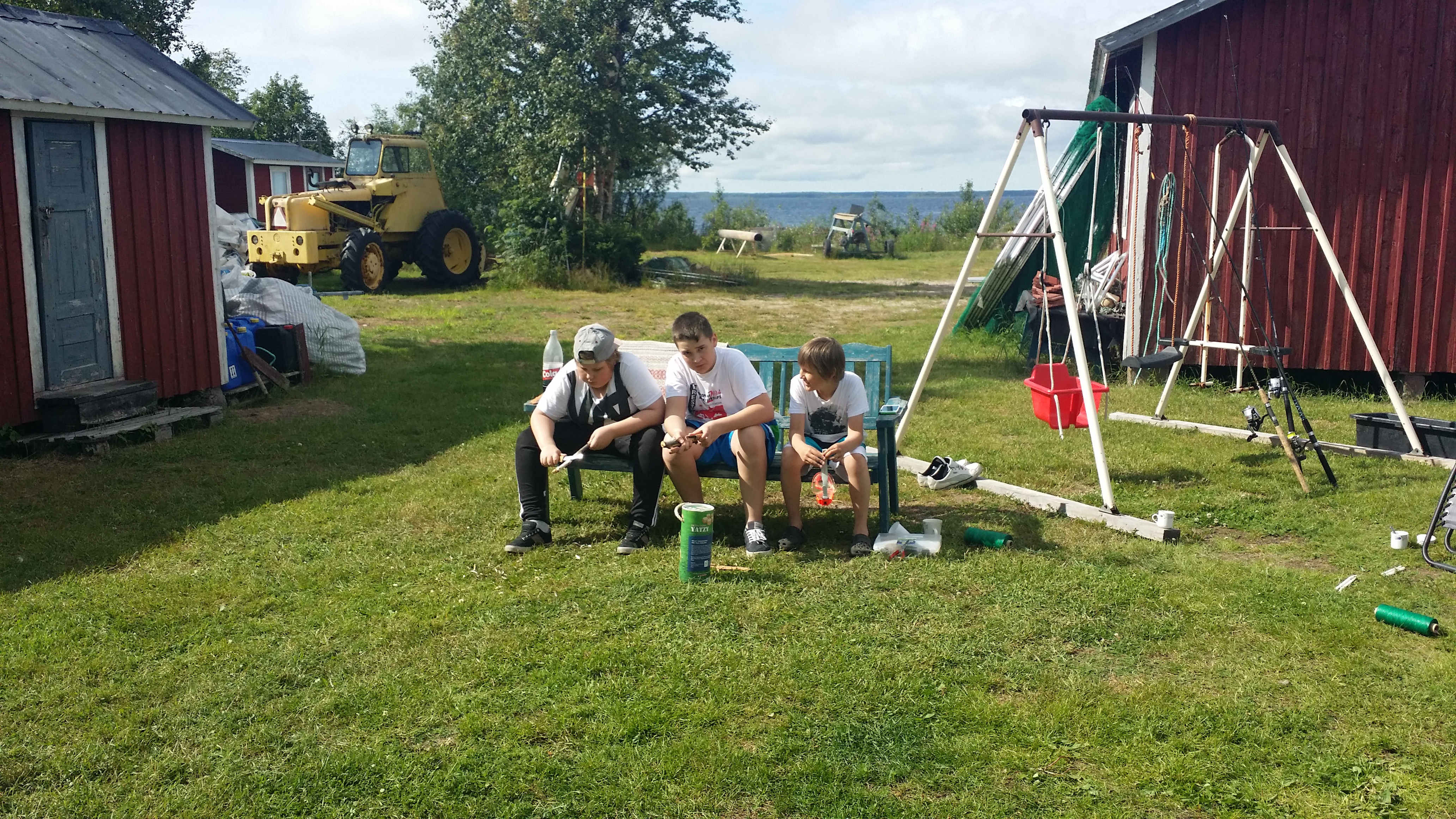 Tommi, Linda och Savannah, de jobbar med att lägga upp ”garn” på en grunkemoj som jag inte vet vad det heter :D. Sen är det Lisen och Pernilla
