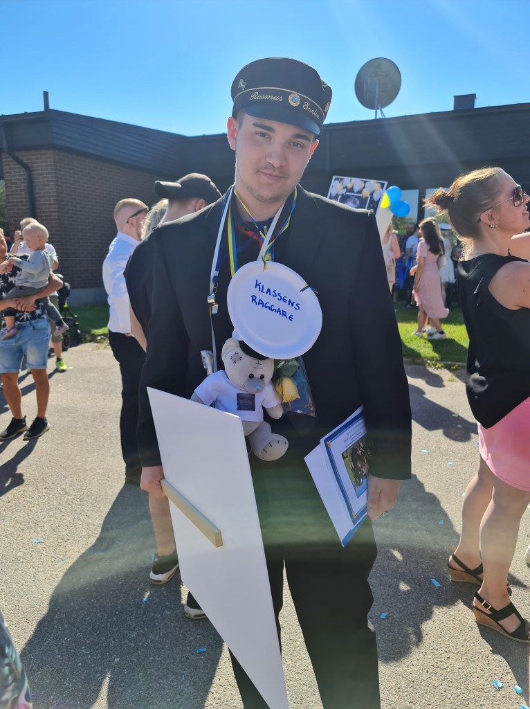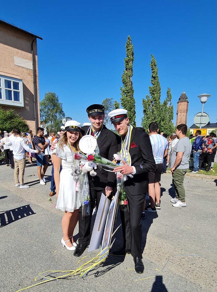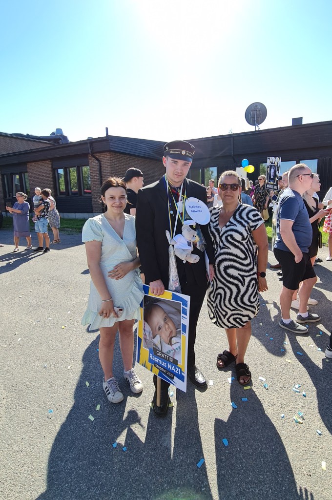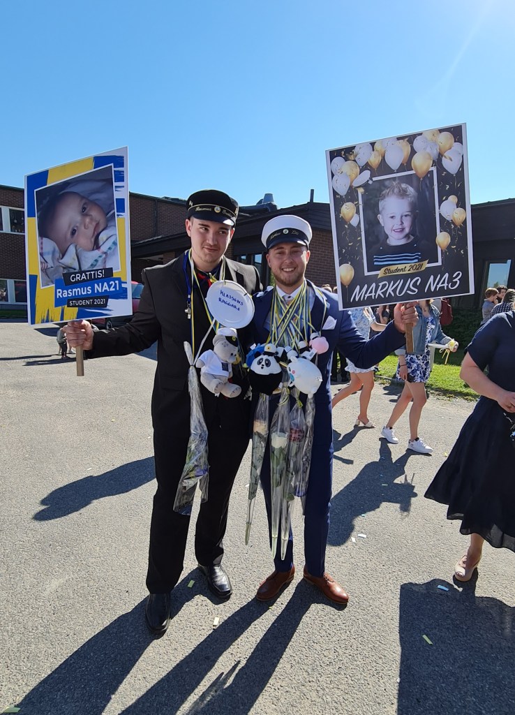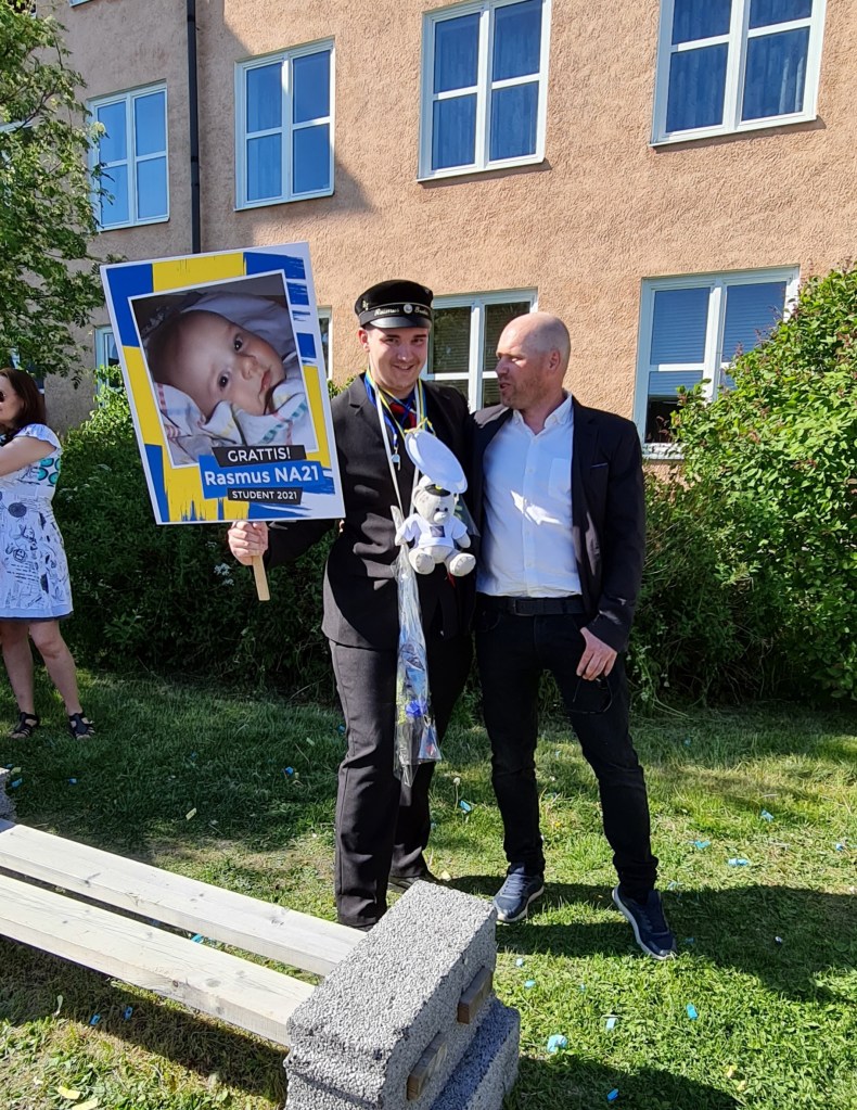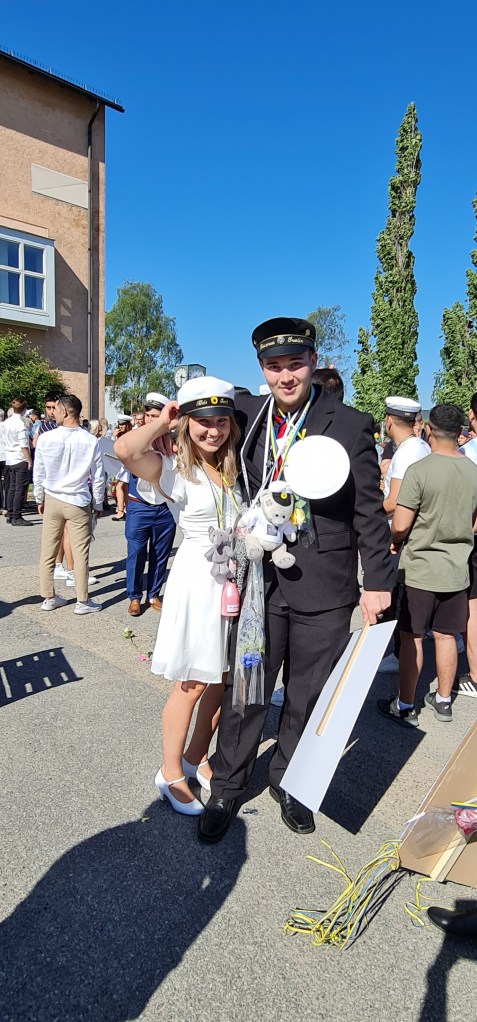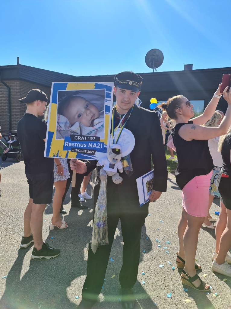 Då var det klart, Rasmus har tagit studenten. 3 år på Naturvetenskapliga programmet är över. Han har kämpat sig igenom det, sista året valde han att läsa mindre matte så det blev NASA för honom då. De trodde inte han skulle fixa det men det gjorde han, han fick tom B i ledarskap. Han är godkänd sina sudier. Han tvekade och tänkte att han kanske inte blir godkänd med det blev han. Så igår var det tal i aulan och utsläpp för dem. Vi fick inte komma in och lyssna pga pandemin men de hade ordnat med en högtalare utanför ifall man vill höra. Sen var det utsläpp. Efter alla foton som skulle tas, så var vi och åt på Lei Lani, Jonte och Nette kom med. På kvällen var det utgång med de andra, ja nå utång och utgång, de var upp på cape East och tog en öl sen var jag och hämtade dem och körde ner dom till stranden, där har de tydligen varit efter det.