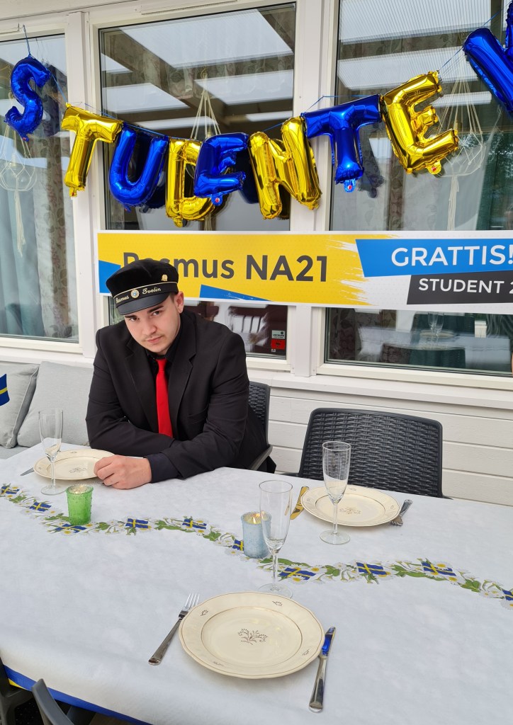 Tack alla berörda för idag, ni gjorde Rasmus dag till ett super minne, detta torts en rådande pandemi! Detta är ju en av milstolparna i livet, ni har alla varit en del av den. Var han vänder sina skor återstår att se. Han är just nu rätt skoltrött en del planer finns men nu tänker han detta år hanka sig fram på små jobb där han får. Han har lagt ut sina krokar lite här och lite där. Han har haft tuffa år och behöver få pusta ut! Jag tackar er alla från Rasmus, jag vet att han är mycket tacksam och glad för att just ni var med igår. Ni är alla underbara, starka och fina stöttepelare för en ungdom som ska ut i livet. Tack än en gång för allt, ni är alla super viktiga våra liv ❤