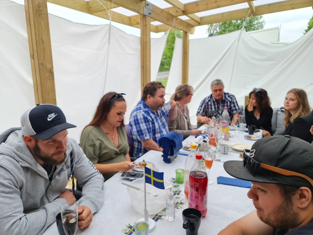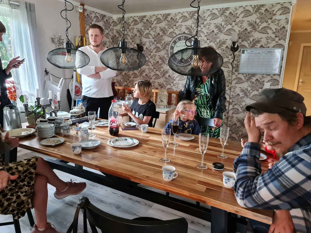 Roligt att se Saga och Theo oxå, det är inte allt för ofta de är med nuförtiden. Man får ju inte med sina ungar längre när man åker nånstans…. inte för att någon ens hälsat på så mycket nånstans under denna pandemi. Emil och hans tjej var med, det tycket Rasmus var roligt förstås. Han och Emil har ju varit så mycket tillsammans, de har varit mer som bröder när de var små, slogs gjorde de oxå som bara den 🙂 Conny och hans barn var den enda som inte var med, han är ju i riskgruppen och har bara fått en spruta så han ville inte ta risken. Ja inte Jussa heller, han mådde inte bra. Men roligt hade vi med många skratt som vanligt.