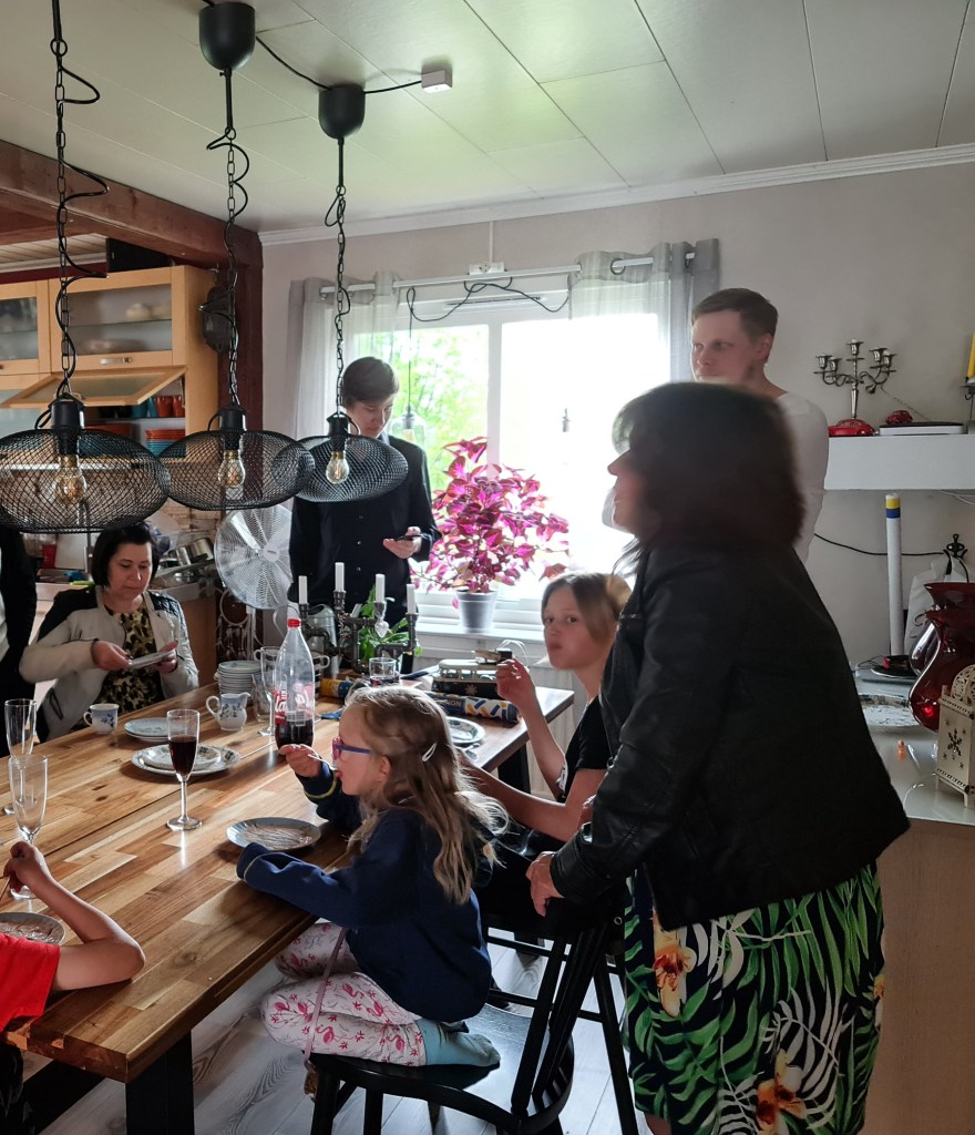 De enda som inte är släkt är Minna och Pontus med de umgås vi med ändå, vi har träffats genom hela pandemin och sen är de nästan som släkt, vi har hängt ihop i över 30 år ❤ Rasmus var lite små trött här, han kom hem 03,30 natten innan, de har ju haft partyn hela veckan. Men tålmodigt satt han och umgicks med oss alla 😀 En härlig stund återigen med mitt gäng. Nette är ju gravid så nästa tillställning så har jag ett barnbarn till ❤