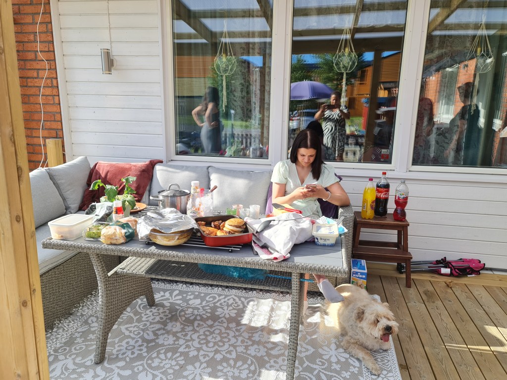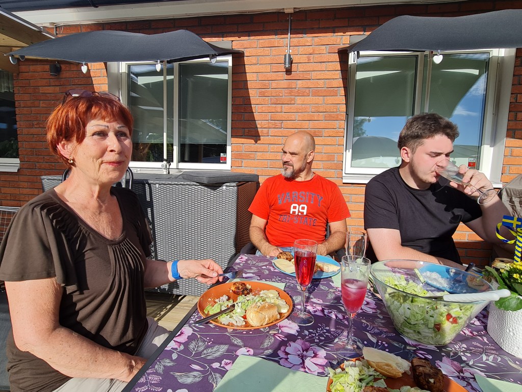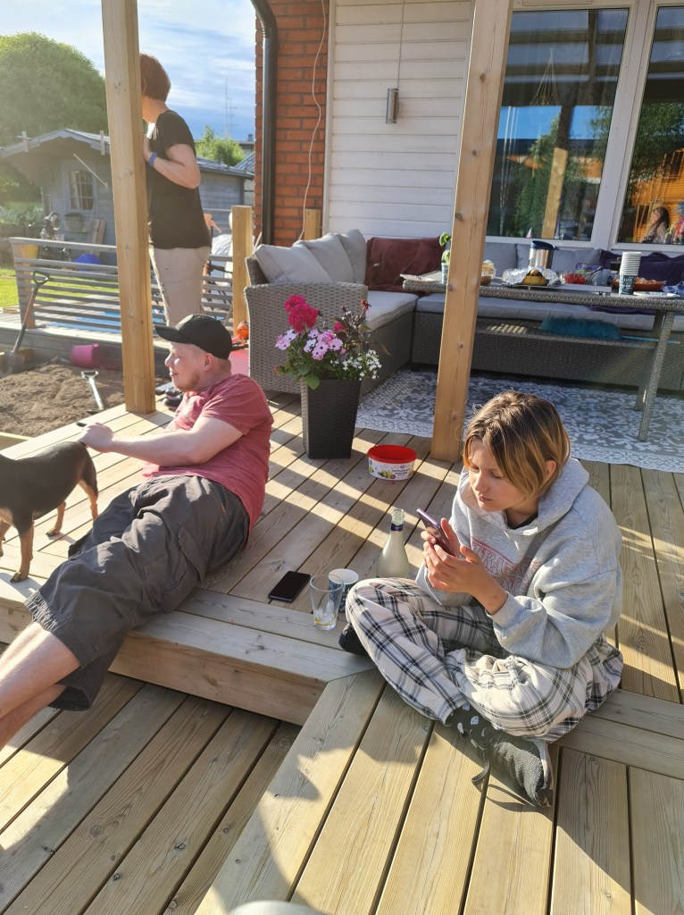 Janne och Petra kom oxå senare, Nette och Jonte for vidare till hennes föräldrar. Vi spelade Kubb, hör och häpna jag har aldrig spelat det så det var på tiden. Det var skit roligt så det blir definitivt fler gånger. Det var som alltid roligt när Petra och hennes familj kommer, vi skrattade och hade en bra kväll. De for vid 20 och jag började plocka undan. Vi skrattade med Danne, bordet såg ut att ha varit med om ett fylleslag, ändå dracks inget annat än alkoholfritt, den enda som tog alkohol var Rasmus, han drack en cider.