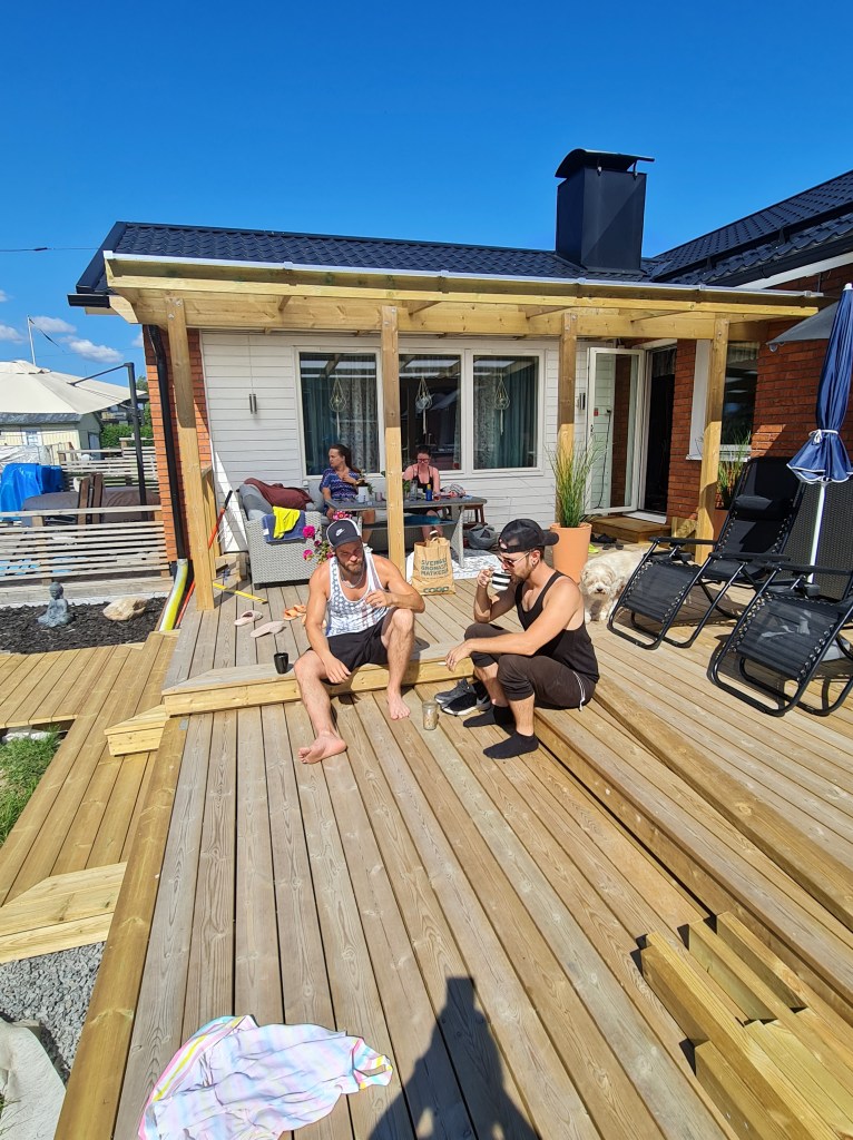 När vi sen vid 21 kom hem från Annika och Tomas så städade jag gården, slängde i klorbyttorna i poolen och täckte den. Satt sen med Larry och pustade ut i soffan på altan, det var en vacker kväll. Jag bara älskar var nya altan ❤