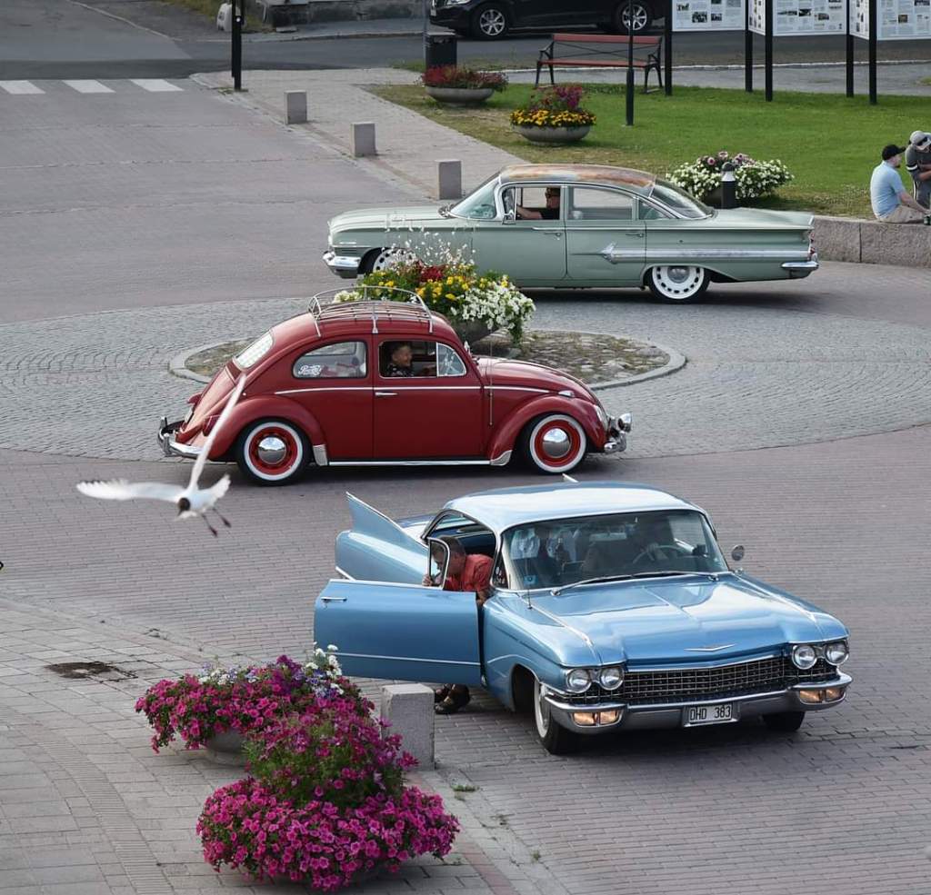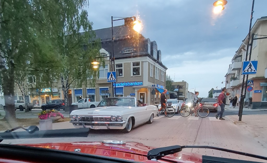 Vi kom hem, tog en liten siesta, Dennis kom och jag klippte honom. Danne tvättade Bubblan, det skulle ju bli lite spontan cruising. Vi for och handlade jag och Danne, tog ett par varv, cruisingen var i full gång. Annika och Tomas kom förbi, vi surrade och garvade som vanligt. Sen drog vi ut på några nya varv runt staden i bubblan. Den väcker som vanligt många leenden, många tummen upp, alla gillar bubblan, många ropar kvällens snyggaste bil, många vill fota och nu hade vi inga väskor eller annat på taket som vi brukar. Vi kom hem redan efter 23. Då tyckte jag det hade börjat glesa av redan med bilar. Men mycket folk var det i farten, många bilar. Det kändes nästan som normalt igen ❤