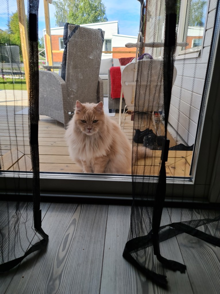 Skrattar åt Bamse han ville in och jag såg honom inte direkt, han satt där och skrek och blängde väldigt surt på mig! Nu ska jag fixa frillan, Larry ska ha mat nr 2, Roffe ska ha käk och så ska de rastas båda två. Sen blir det poolfix här, båda poolerna behöver lite omsorg. Det har ju varit kallt en vecka nu!