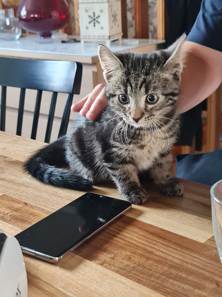 Rasmus hämtade sin Lucifer igår, en liten 11 veckors kissebäääbis, så fin, blandning med Sibirisk katt, huskatt och fader okänd. Jätte fin, mörk är den, dubbelt så stor som sin syskon visst. Har igen bild, hann inte fota den igår. Rasmus hade heller ingen bra bild men skulle fota idag så jag kan lägga ut och visa upp honom. Den hade bitit honom halva natten sa han 😀 så är det att bli kattpappa 🙂 Här kommer några foton, Rasmus kom ut med den så jag fick några 🙂