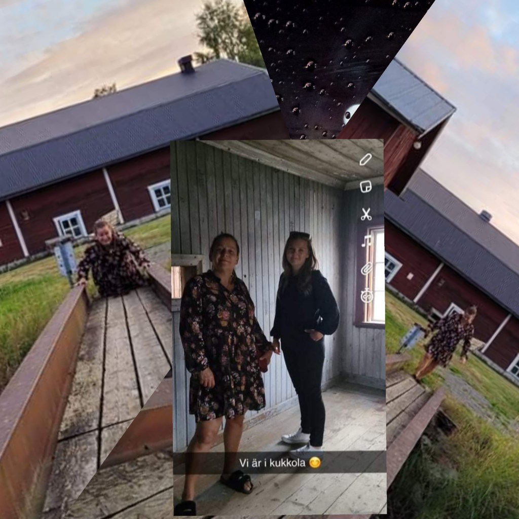 Efter jobbet for vi som jag nämnde i gårdagens blogg till Kukkolaforsen på middag, vi blev 13, vi skulle varit 14 men Jussa stannade hemma. Lasse, Bejans ex har kommit så han blev nog hemma med honom. Jag åt högrevsburgare, så god. Till efterrätt blev det glass med chokladsås. Lite synd, jag saknade rotfruktschipsen, det fick jag sist, nu var det vanliga lantchips till burgaren istället…. med rotfruktschipsen, de gör dom själv antar jag, de är ju som mer matiga. Evelinas och Mirandas chipshögar var bara smulor så de kunde inte äta dem, de hade behövt ha sked! Evelina sa till om det iallafall. Jag, Annika och Evelina stannade och gick i de olika husen efteråt, det har ju som till när man ändå är där. Men dom är ju så sneda och vinda så jag blev alldeles yr i huvudet! Vi skulle sen gå över en liten bro över till en pir men jag kunde inte, jag var så jävla vinglig och när jag tittade ner på vattnet så blev det ännu värre, det kändes som om jag tippar ner där! Så vi plojade lite och jag låtsades krypa över 🙂