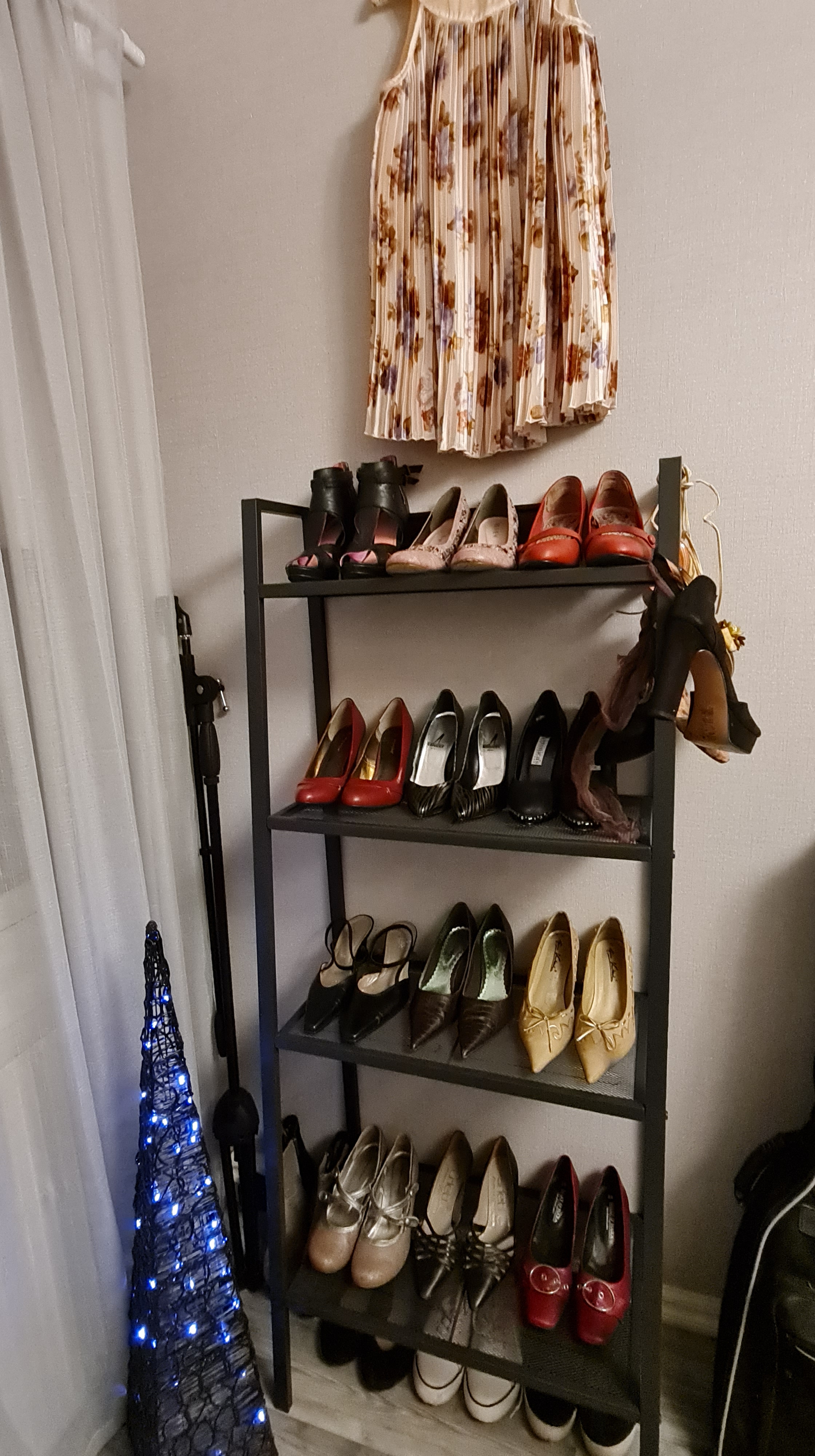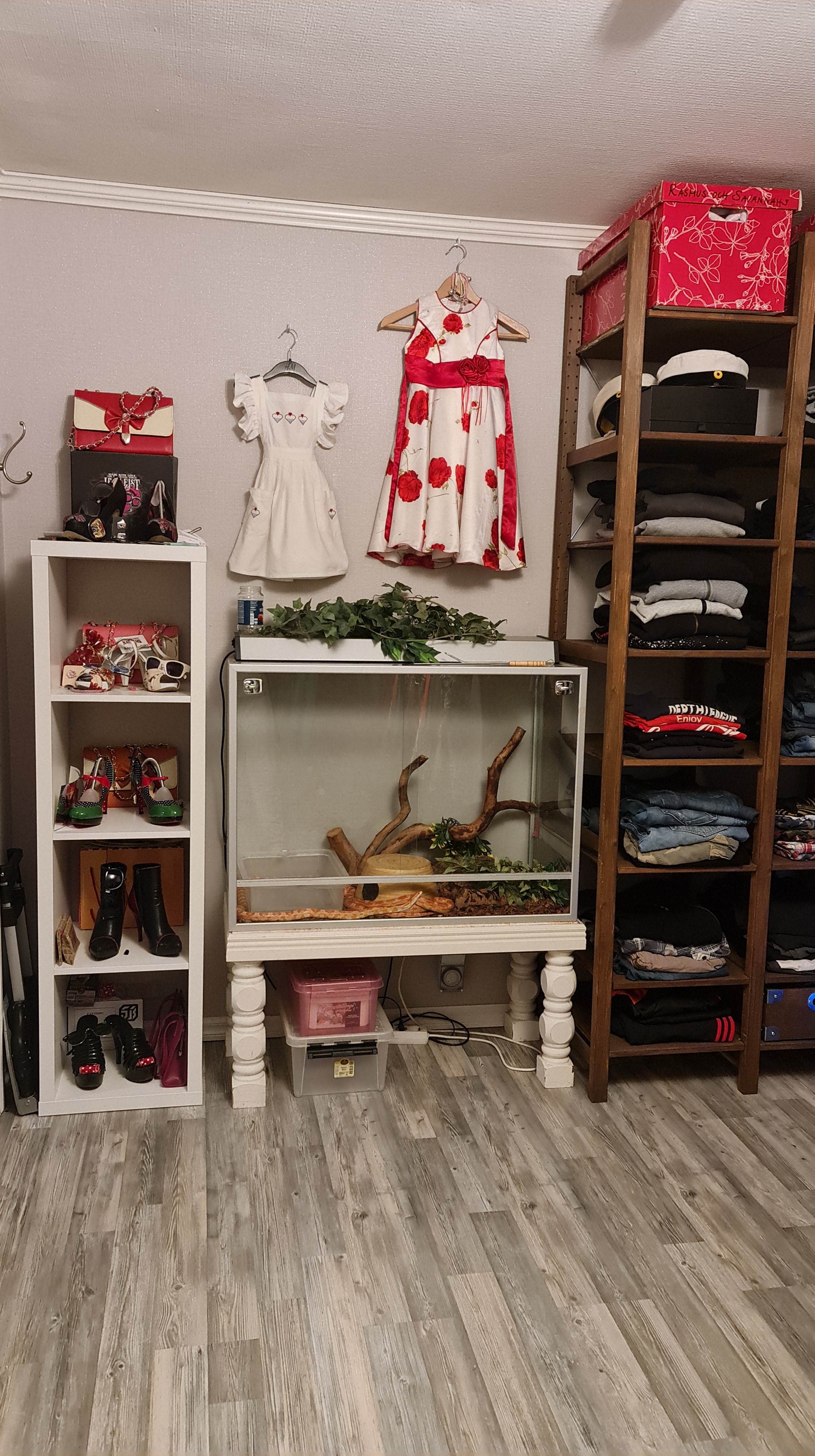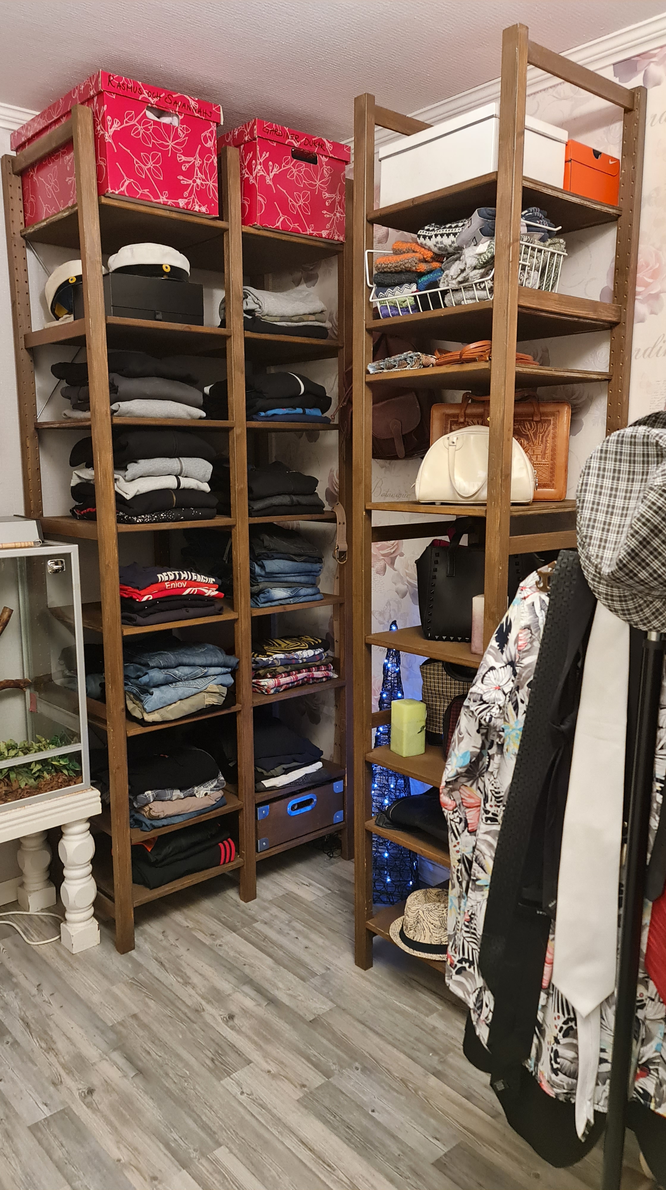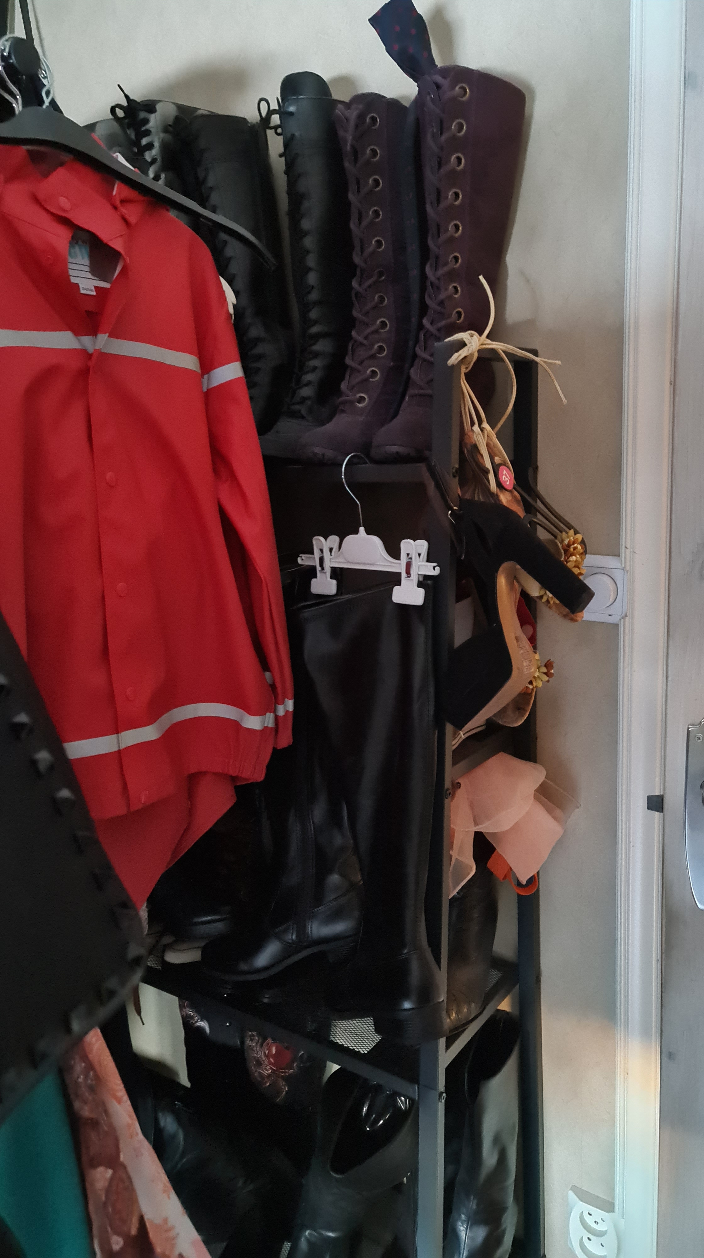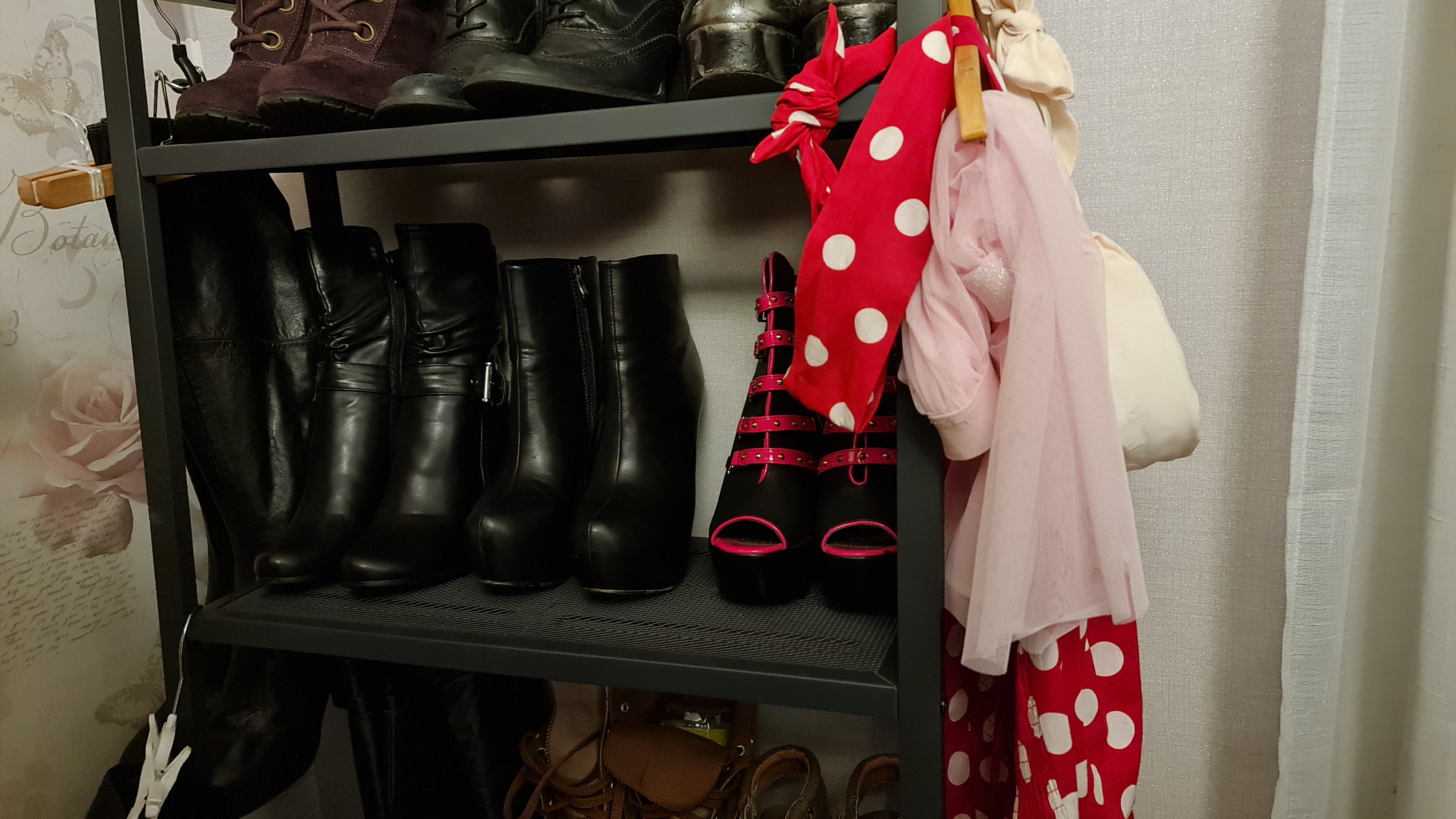 När jag sen kom hem så började jag med vår garderob!! Ja det var inte lite göra det. Zumba kläderna från vardagsrummet sorterades in i trådbackarna, lite svårare att se nu hade behövt en till trådback men jag ska köpa en och sortera om. Skorna åkte in i lilla rummet, de rymdes helt enkelt inte. Sen flytta hyllorna, in med alla våra kläder, sortera i dom, rensa, göra om, placera allt, var ska allt vara!, Jag ska ännu göra om lite grann i rummet bland alla mina scarfs tänkte jag. Men nu är det bara att köpa in ett skrivbord och börja göra iordning för ”kontoret”