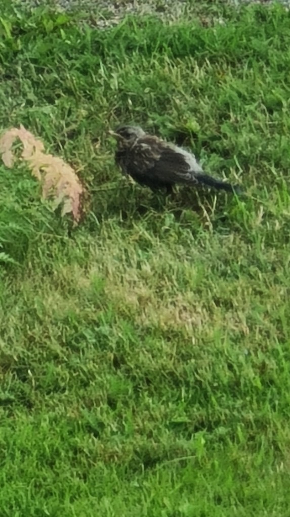 Måååå såg en fågel som hoppade runt på gräsmattan mellan oss och Danne och Monica, både dom och vi har ju katt. Den verkade skadad. Jag gick närmare den bara för att se om den flög och det gjorde den inte. Har hållit koll på den, den hoppade mot Ulla men nu är den borta så jag hoppas den bara flugit in i nån ruta och var lite groggig att den kom igen och kunde flyga iväg.