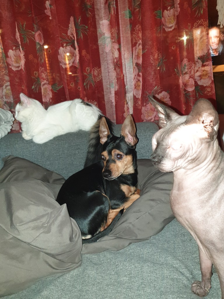 Jag hade samling i soffan efter att jag kom hem igår våra djur minus Bamse kom alla och satt med mig. Rasmus Lucifer var oxå uppe men håller lite avstånd när alla våra är samlade. Det går faktiskt jätte bra med Rasmus katter. Trodde det skulle bli jobbigare men det är jätte fina lugna katter. Melinda kommer aldrig ens upp, hon håller sig i Rasmus rum med Ramus. Hon var upp en gång och mötte Mr Dracula himself och ännu i bara mässingen dvs Finn och drog ner fortare än ögat och efter det har hon inte varit upp.