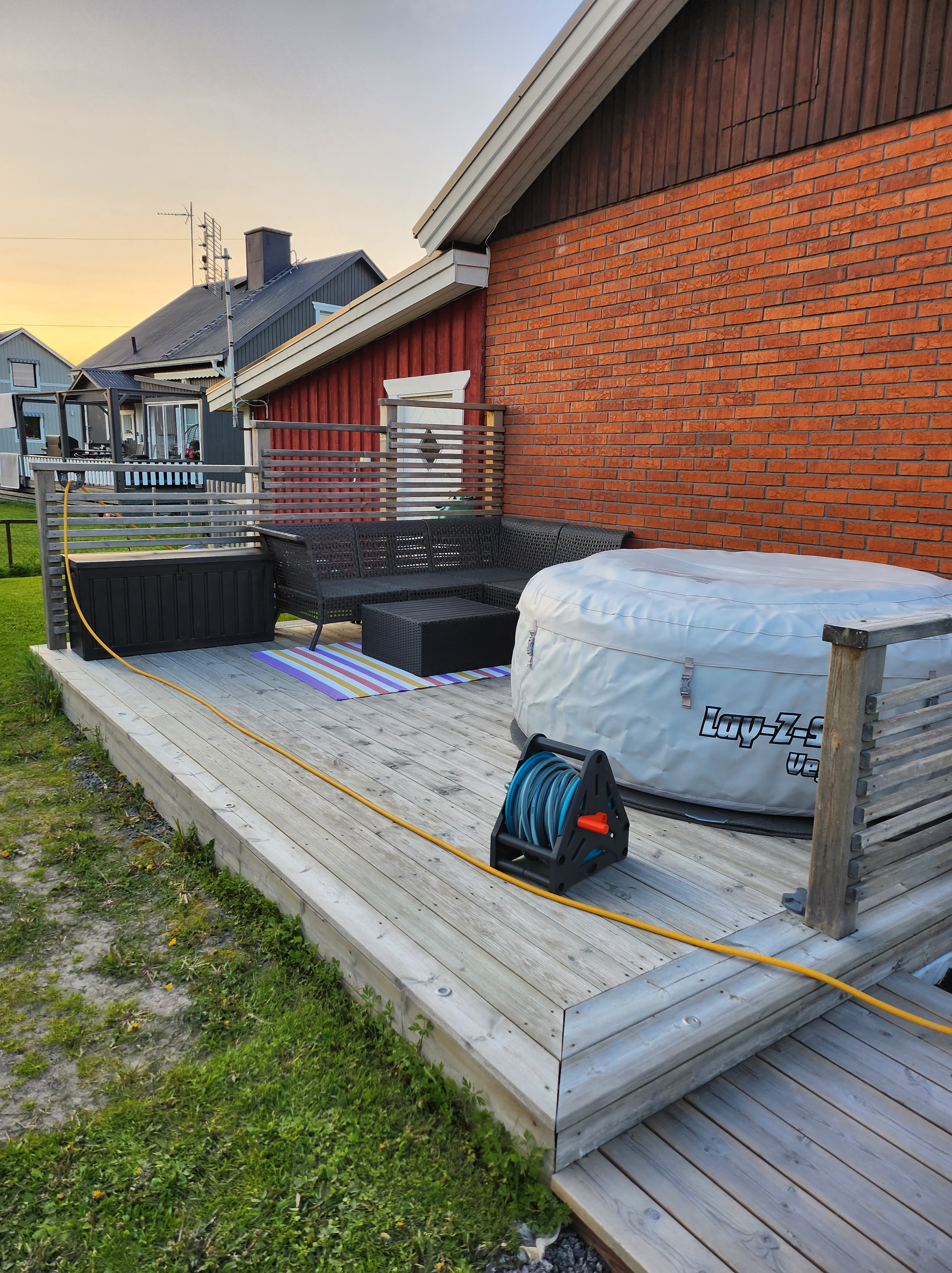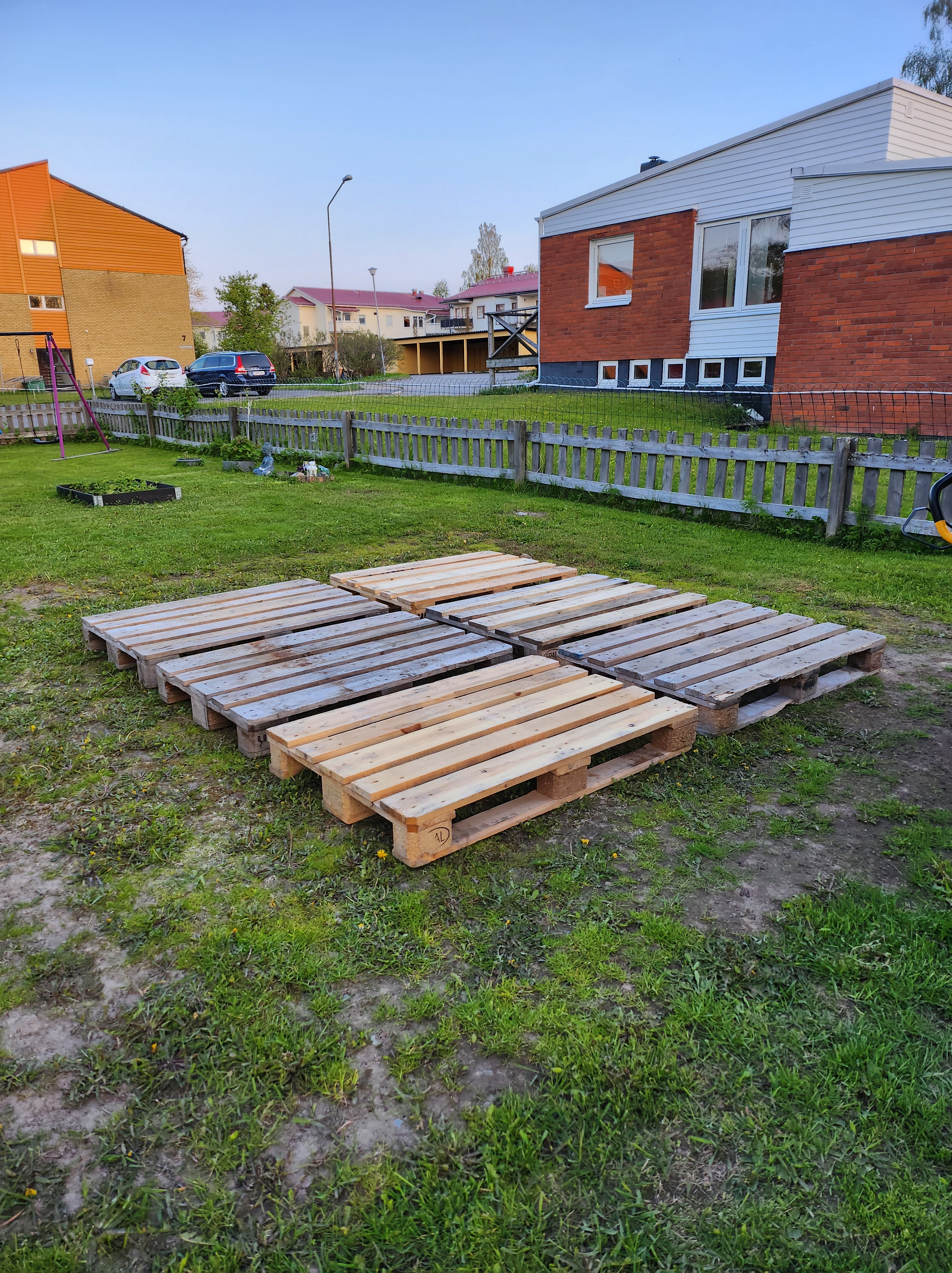 Sen tog jag tag i spaet, la ut det. Sen fick jag fick lastpallarna av Dennis, på det ska den nya lilla poolen, det kommer att bli skit bra, la ut dom som jag vill ha dom och allt passade perfekt. Behövde 5 stora skivor mark isolering och jag hade precis 5! Dom ska under poolen, det ska jag fixa idag. Poolen kommer oxå upp idag. Spaet kom ialf upp, vi blåste upp den på kvällen och satte den på plats. Inget vatten i än, det blir idag.