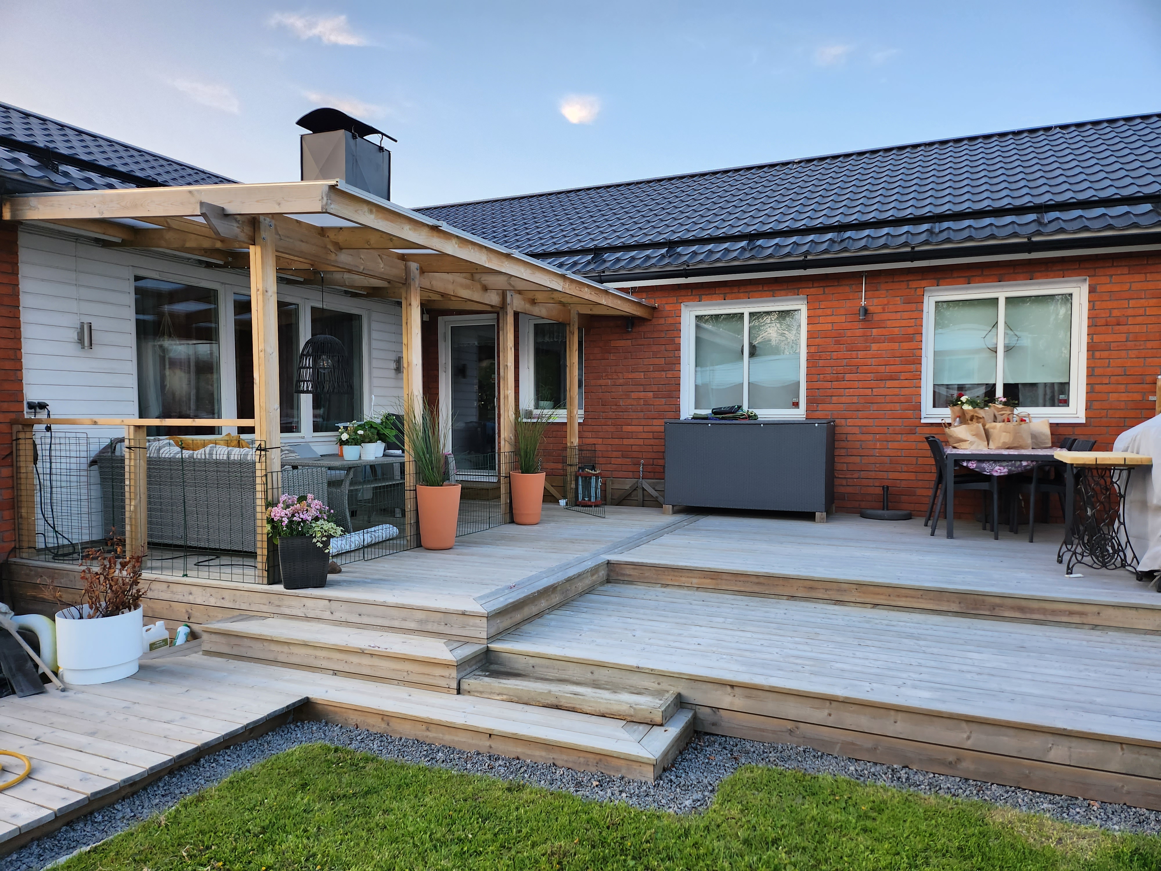 Igår började jag sätta upp kattstängslet, jag har ju beställt nät men det kommer nästa vecka först. Sen blir problemet, hur fäster jag det? Danne vill inte att man sätter i tusen skruvar i plankorna….. men nu kom jag på det, jag ska köpa såna nya tavelkrokar som man klistrar upp, dom håller så bra. Vi har sattit såna som extra klädkrokar hos mamma, de håller tom tunga vinterjackor. Men grinden, hur gör jag enklast vid grinden så att vi lätt kommer in och ut….. det måste bli nått som är omlott….. men hur fäster man då??? Måste fundera över det…