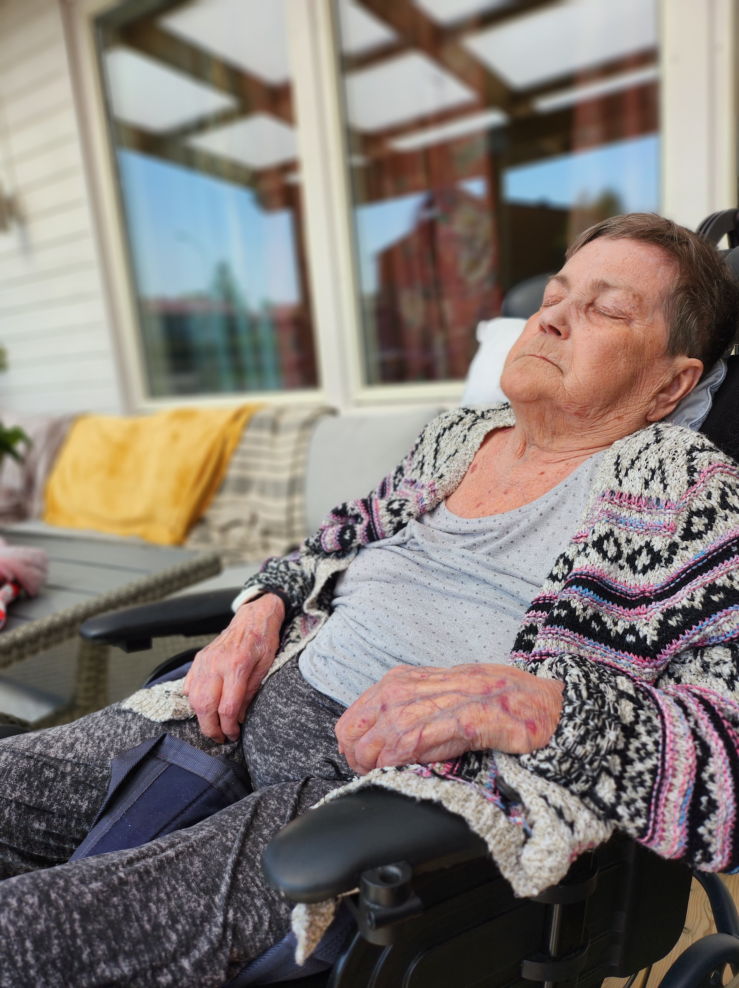 Vilken dag igår, varmast hittills tror jag. Hämtade mamma och vi var ute på lunch, sen for vi till oss och satt på altanen och fikade. Hon var trött, det är ju varmt som bara den och på vår altan är det ju ännu lä. Men vi hade 2.5 timmar mys ihop igår.
