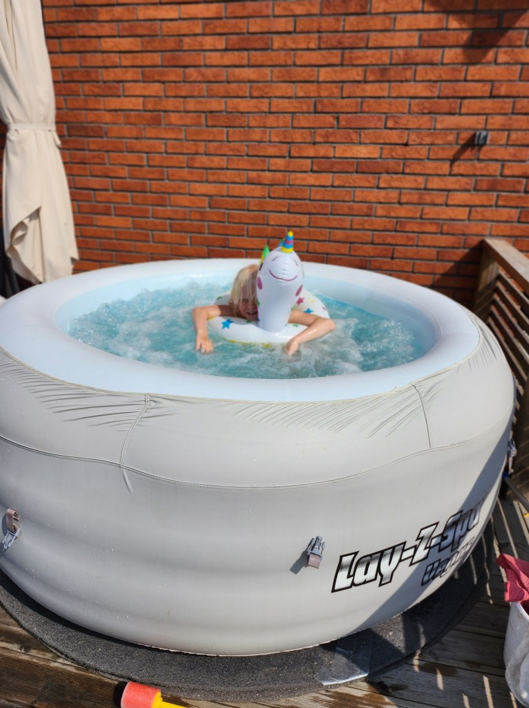 Dennis jobbar och hon ville komma till fammo istället för att vara på frillo och självklart ska hon ju det. Vi var och gjorde ärenden. Var på Hermanssons och hjälpte Minna med en grej. Sen tog vi Roffe och promenerade ner till Strandcaféet, Savannah har börjat jobba. Sen har hon ju förstås badat och badat, bara bytt pool 🙂