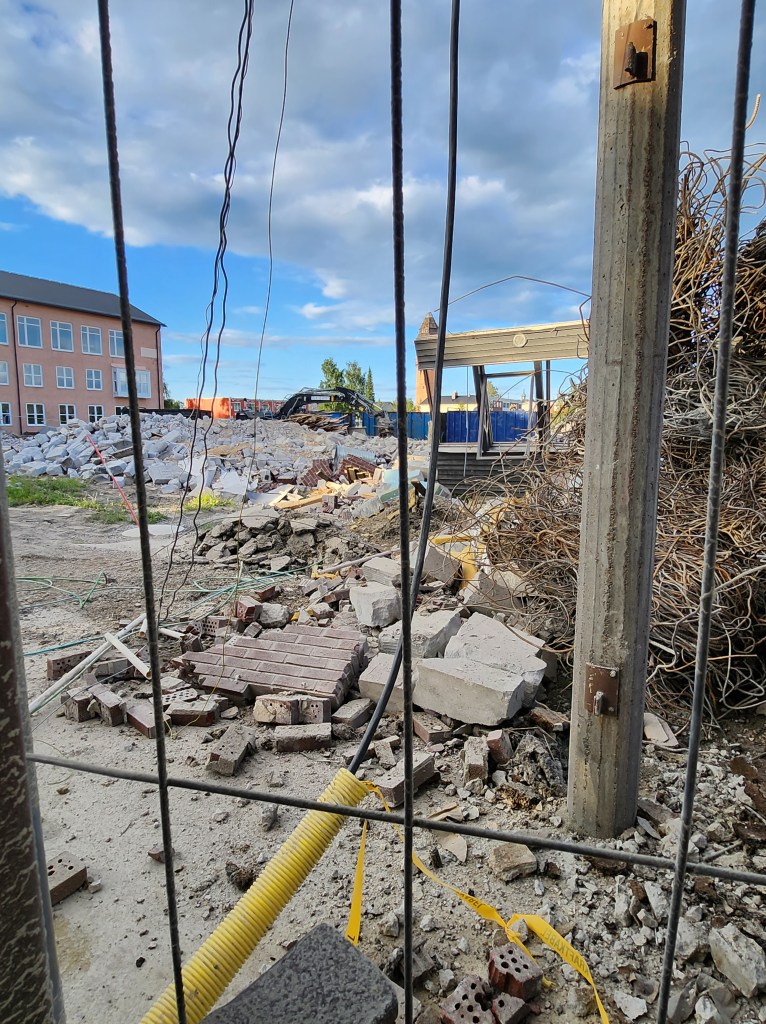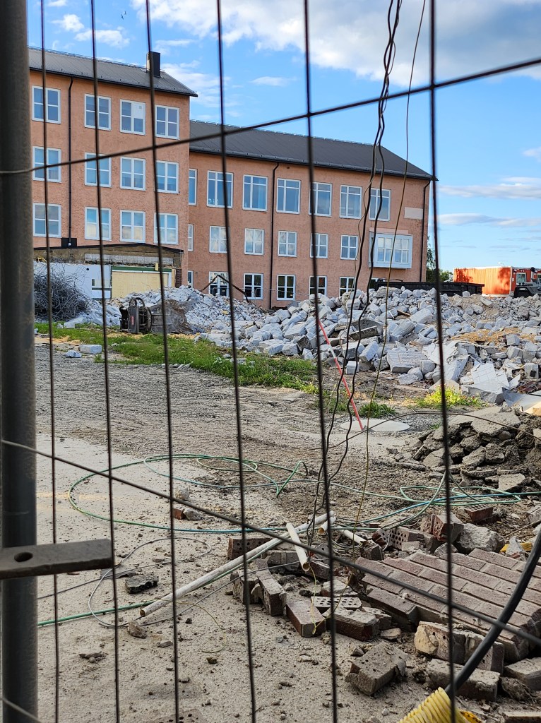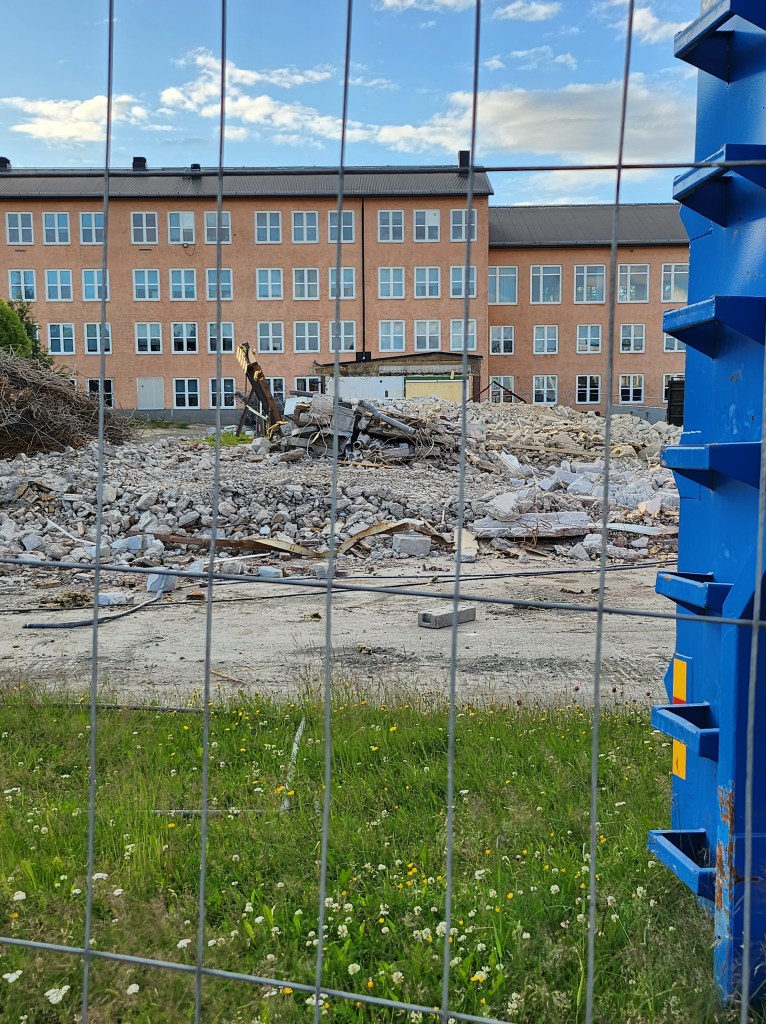 Var och prompade med Roffe på kvällen, gick förbi Tornedalsskolan, kollade hur långt det hunnit i rivningen. Och nu är nog allt som ska rivas rivet, bara att forsla undan ”skräpet” nu. Men det känns som om hur har det rymts där? Det såg så litet ut utrymmet där allt varit.