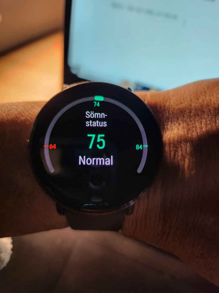 Sovit jätte bra i natt, för första gången någonsin tror jag så hade jag full pott i återhämtningen, det har aldrig hänt tidigare. Men då var själva sömnen inte så lång, den låg på plus men jag hade många avbrott och så. Det känns ändå som om jag sovit jätte bra.
