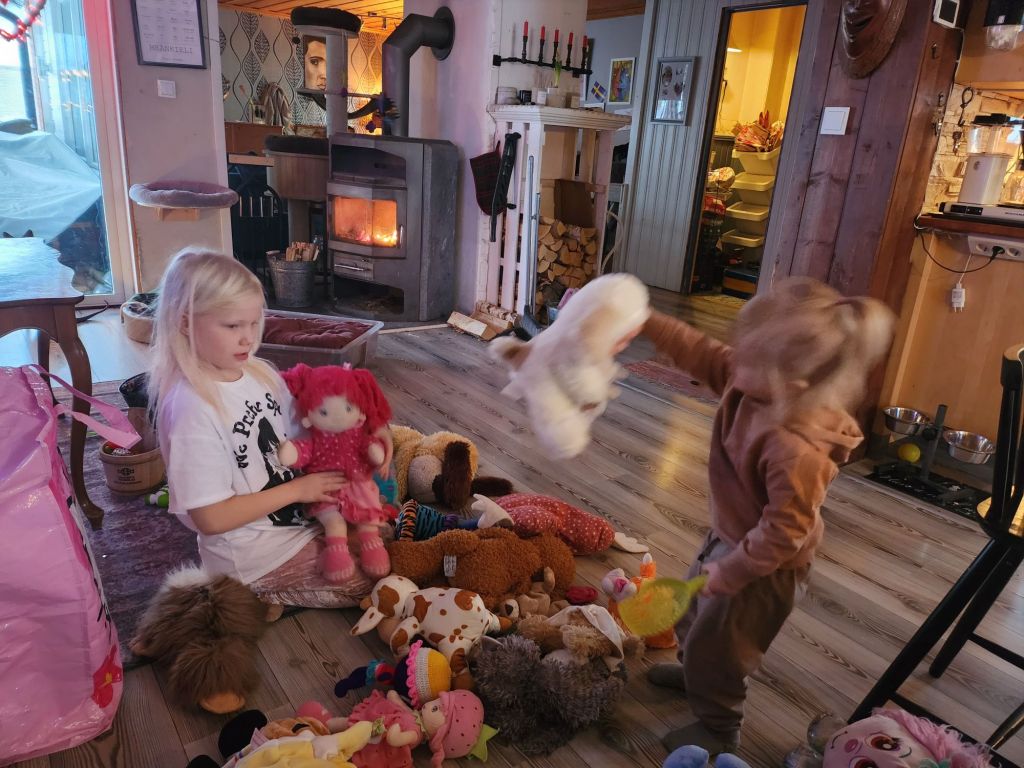 Jag var barnvakt igår, hämtade Freya vid 08.15, Nette behövde få färdigt sina uppgifter till skolan och så klart fammo vill ha gumsan, hon är så underbar. Vi satt och tittade tv, tittade på hennes bilder på plattan, gosade lite hon är så fin ❤ Alicia kom oxå vid halv 12. Hon är så duktig med Freya, hon matade henne lite så att hon åt lite. Hon har ju varit sjuk och matlusten har inte återvänt än. Men hon åt lite macka och drack lite oboy, makade lite ägg men Roffe fick det mesta av det. Sen gjorde vi gröt och Alicia fick henne att äta lite av det oxå. Vi ritade, tog fram alla Savannahs gamla nallar. Hon har en hel säck, genom åren har jag gett bort en del.