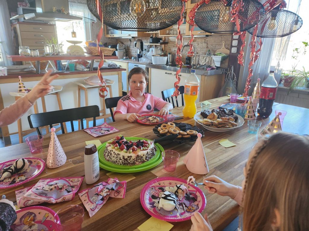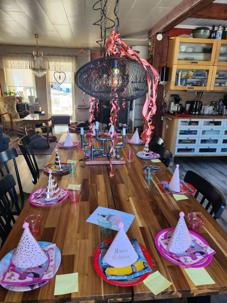 Vilken dag det var igår!!! Alicia ringde redan vid 08 och kom vid 08.30. Vi joxade på lite här hemma och sen for vi kl 10 till Dollar och handlade det sista inför festen. For sen hem och gjorde iordning. Alicia dukade, hon är så duktig. Hon gjorde jätte fint, helt själv.