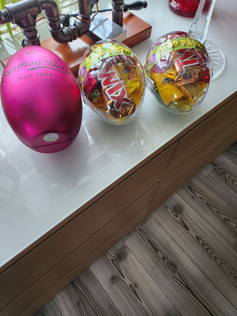 Till gårdagen! Vid 10 började jag med efterrätterna, gjorde dom klar och ställde dom ut på altanen. Hackade vitlök i massor, skulle ha i i gratängen och till kycklingen. Satte in gratängen och gjorde kycklingen i ordning på plåten så den skulle vara klar att sätta in. Grävde fram dukar, påsktuppen, orkade inte ha mer än så. Började lasta allt som skull fram på vår nya bänk.