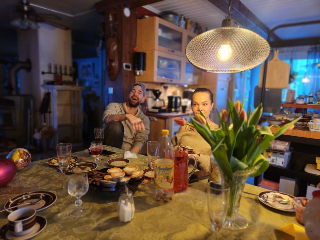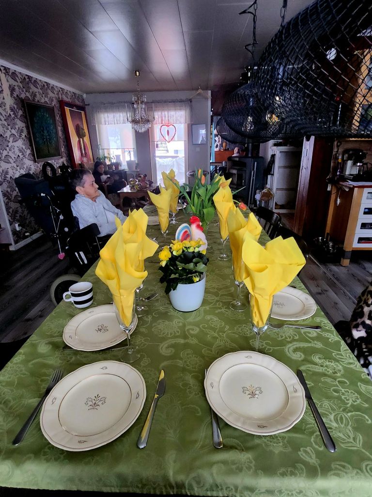 Dukade bordet vid 14.30, sökte fram stolar och planerade var alla skulle sitta ändå missade jag mig själv 😂 så jag dukade för tio och vi var ju som sagt 11 🙂 Men det löste ju sig snabbt. Satte på potatisen och koka efter 15, satte in gratängen och kycklingen på värme i ugnen, gästerna började komma vid 15.30. Innan jag och Pia gick iväg för att hämta mamma så åkte riset i grytan. Vi var hos mamma vis 16. De hade gjort henne så fin. Men hörni att ta sig fram igår var inte det lättaste! Vi fick gå mitt på gatan för att det inte var plogat, trottoarerna var obefintliga.
