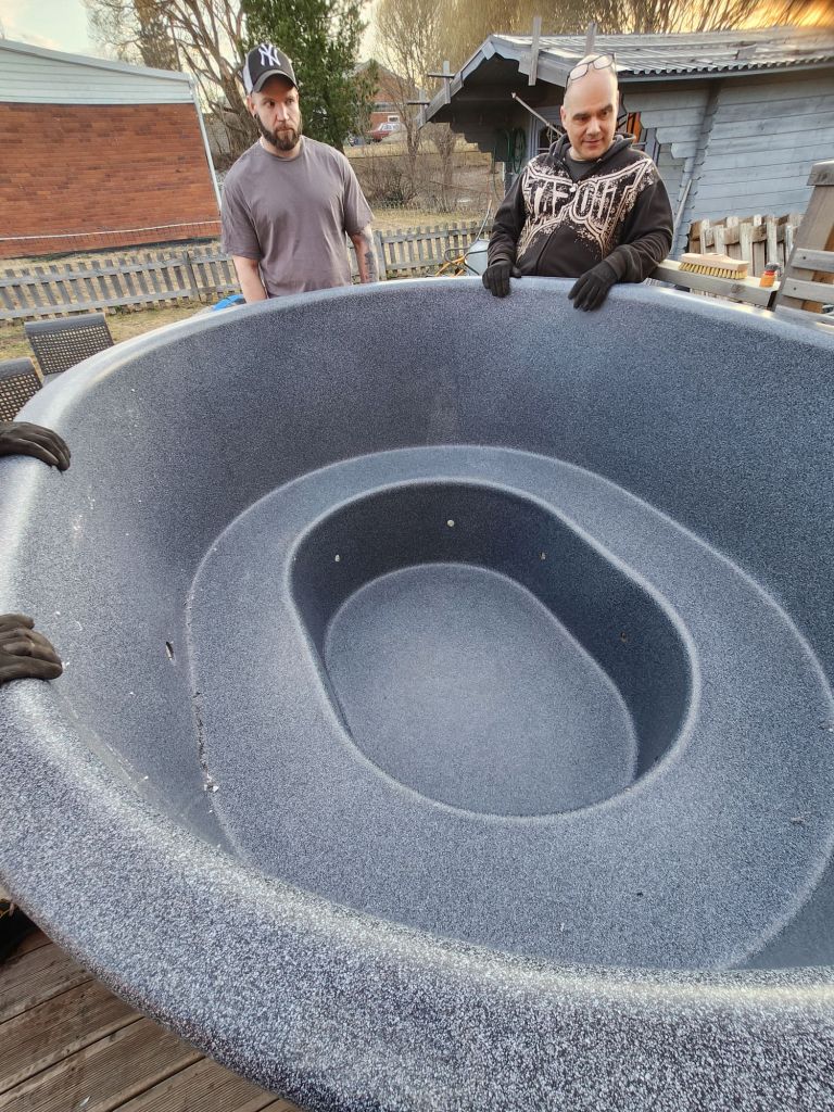 Vet ni vad mitt bad kom igår!!!!! Vet du hur nöjd jag är!!! Schenker kom och tippade av det på dagen. Jätte trevlig chaufför, ung kille som verkligen slet för att få upp den på gården, det är inte lätt att dra i grus.