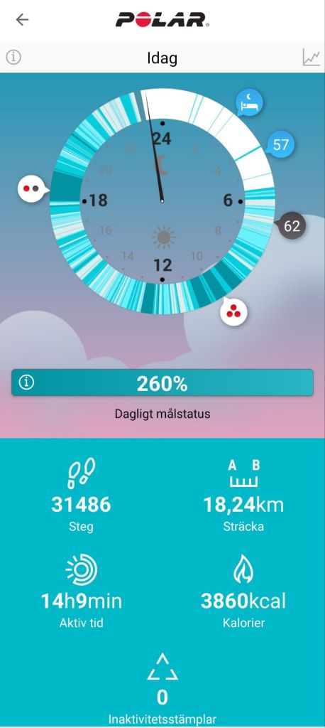 Kom i bastun först efter 22, skööönt var det. Trött var jag som en gnu men uppvarvad av dagen. Stegen blev måååånga igår! Jag hade svårt att komma till ro när jag sen gick i säng. Men när jag väl somnat sov jag som en stock. Återhämtat mig bra men tiden var för kort enligt klockan.