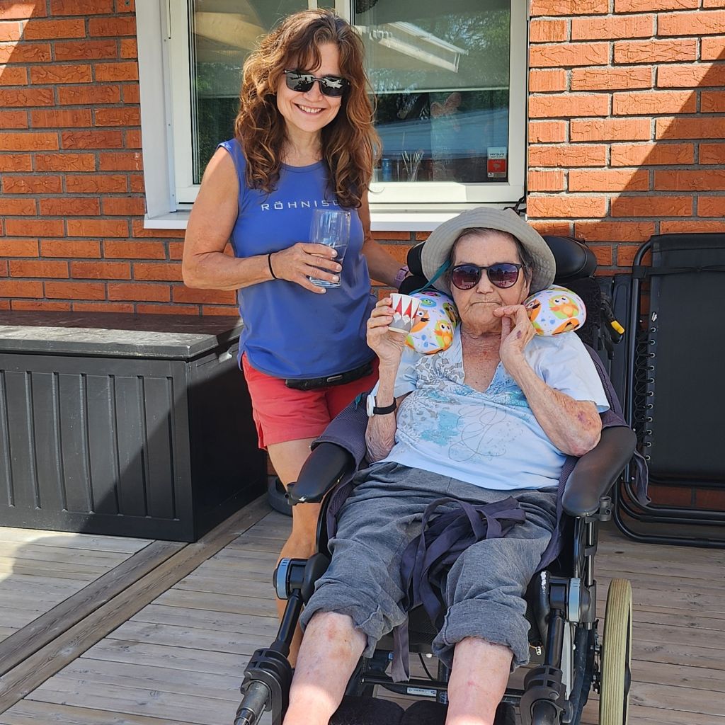 Vi pratade med Annika, tänk så få det är som får komma ut, ha besök så ofta som mamma. Vi är där varje vecka, tar med henne. Hon är alltid med på högtider och födelsedagar. Men många får inte ens komma från avdelningen. De har en fin innergård men de får inte ens gå ner dit! Ja det är klart att det kräver en personal att vara där, övervaka men kan man inte göra upp med de andra avdelningarna. Man kan ju ha en ”gårdstur” typ eller nått. Det behöver ju inte vara en där från varje avdelning och man sitter ju kanske inte där i flera timmar nu. Och jag menar dom är ju på sin egen gård och behöver man hjälp eller om någon behöver gå in så är det ju bara en minut bort från sin egen avdelning! Ja inte vet jag det kanske inte går att genomföra något sådant men jag tänker att de har så många fina utrymmen som inte utnyttjas till nått.
