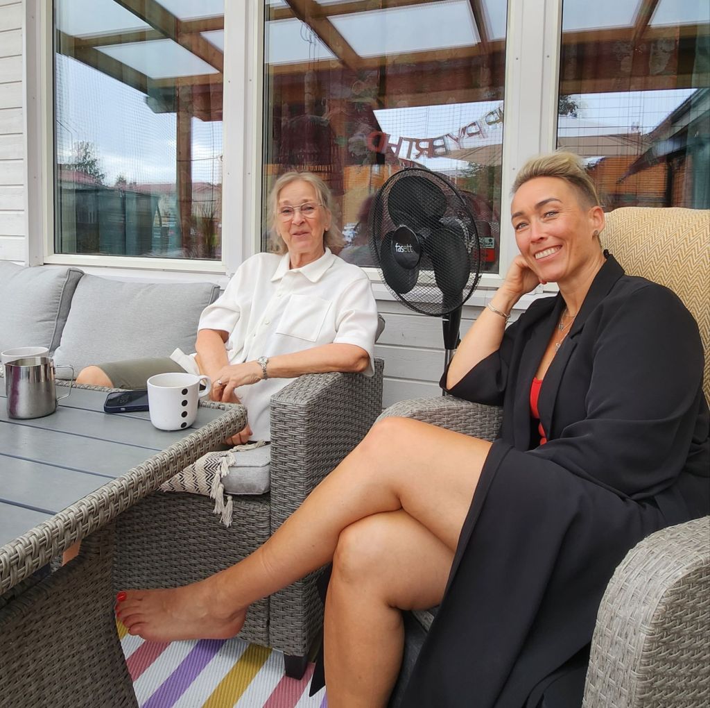 Ethel och hennes dotter Jenny kom och hälsade på. Det är så roligt, jag har om jag kommer ihåg rätt sett Jenny när hon var liten en gång. Så hon messade och frågade om jag är hemma, jag var hos morsan men sa att jag kan gå hem på en gång om de är i stan. Vi satt och pratade en timme kanske. Det var så roligt. Jenny var jätte lätt att prata med, det var som om vi kände varandra. Hon sa att nästa gång jag är här så ska jag komma och knacka på. Och det tycker jag absolut att hon ska göra. Det är så kul att ha fått upp den kontakten med Ethel igen och nu Jenny då. De känns ändå som min familj på något vis fast att de inte är det. Lennart, Jennys pappa bodde ju hos oss länge, han brukade kalla oss för syrror, mamma och pappa var även hans sa han.