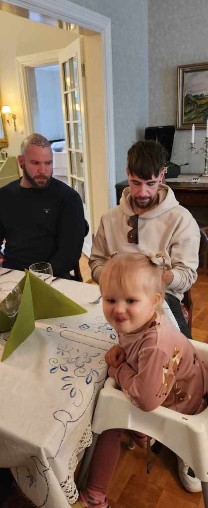 Tiden bara sprang iväg så vi var tvungen att begära mer tid av taxi och det gick bra. De kom sen och hämtade mamma vid 19. Annika, Tomas och Bejan kom sen hit en stund. Vi summerade kvällen och alla var så nöjda. Satte mig i soffan och kollade slutet på Idol, gick tidigt i säng, somnade som en stock….. bara för att vakna kl 02 och hade så svårt att somna om, sov bara skvättar här och där efter det. Så jobb dagen kommer bli tuff! Nä nu blir det frillan och sen jobbet.