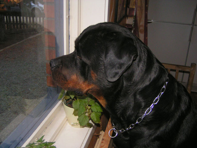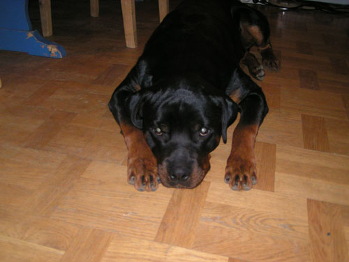 Rasmus fina Hera, Mejas valp. Meja var oxå vår hund, hon kom hit på sensommaren 2004. Hon styrde Atlaz med järnhand, han 65 kg, hon 5 men han backade för henne. Stod hon i dörröppningen så vågade han inte komma in. Men efter att vi tog Nellie och Exo så trivdes hon inte längre i vår familj, hon gillade inte de nya bestarna så hon flyttade till Stefan 2006 kanske.