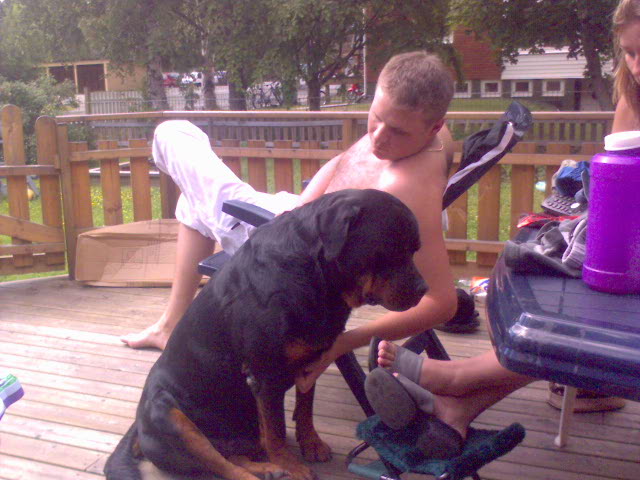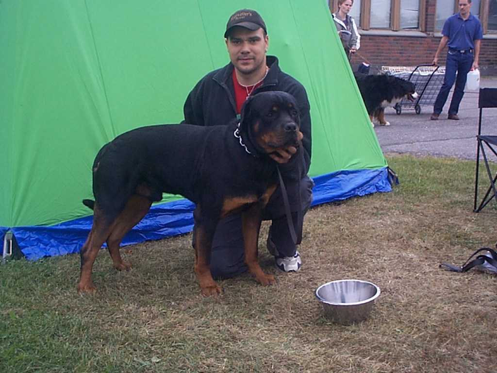 Vi köpte Atlaz i juni 2001, han är född den 15/4- 01. Kingen och Tiara fanns alltså då ännu. Men jag var ju van att ha 3 rottisar i mitt hushålle så jag saknade det så det blev en till. Han blev en stor vaktig bit vår gode Atlaz. Det var mycket om och kring med honom Men han lärde mig rottis, han lärde mig att se vad de tänker kände jag. Hade jag fått Atlaz idag så hade vi gjort på ett helt annat sätt. Med oss var han världens snällaste hund men han vakta familjen stenhårt. INGEN hade gått förbi honom om han inte hade velat det.