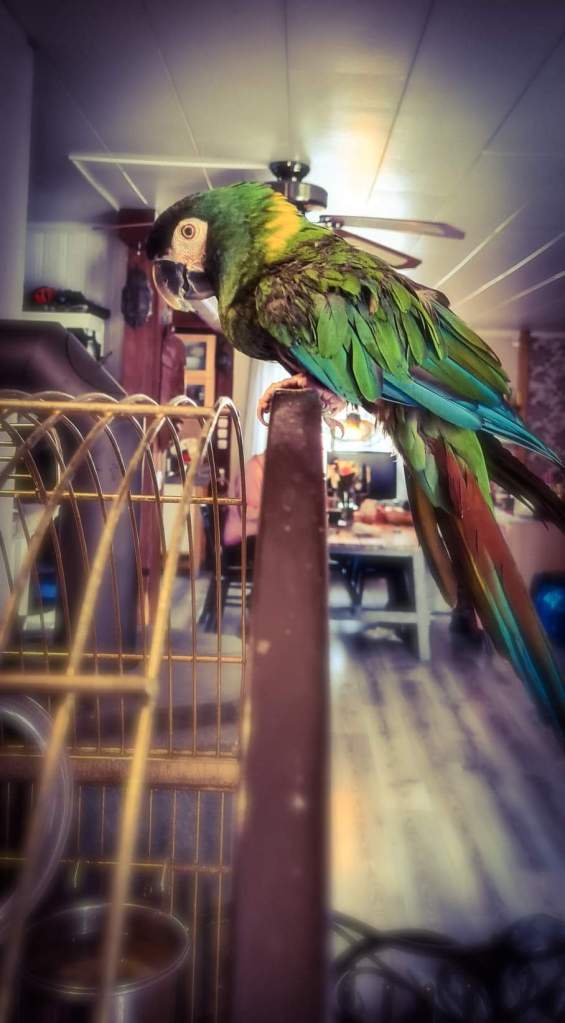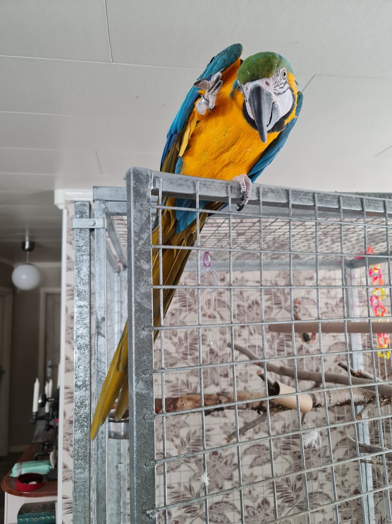 Papegojor har vi haft en del, Hubert, grå jako, så rolig, pratade en hel del, härmade och gjorde sina egna meningar. Han flyttade in hos oss 2002 innan Rasmus föddes. Barbro oxå en grå jako kom till oss 2006 i augusti. Moa, en grå jako köpte vi 2006 på våren. Men jag blev sedan allergisk och Moa såldes till Hanna i Oulu som sedan sålde den till Helsingfors till ett äldre par med en egen grå jako. Där bor hon än idag. Hubbe och Barbro flyttade till Björn, Hubbes ägare innan mig. Där fick de bo tills de båda dog, de var gamla gojor, Hubbe var säkert över 50 år och Barbro ännu äldre. Sen har jag haft en liten goffin kakadua, Goffi oxå men den hade jag inte länge, Sari och Jerry köpte den av mig