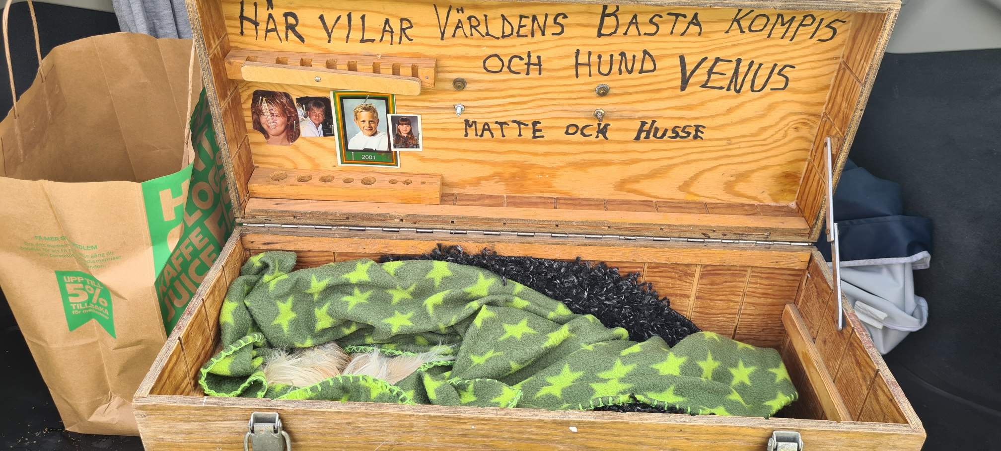 Jag och Danne hade hade två hundar till Kingen, en blandis och så vår stora fina rottis Atlaz. Tiara löpte och Atlaz klev upp på henne i ett obevakat ögonblick och hennes rygg höll inte. Vi fick ta bort henne två dagar senare. Men det var väntat vi hade tänkt göra det innan vintern kommer ändå, hon frös så, hon var så tunn. Hela stan led med oss då vi fått datumet. Alla kom och sa hej då, alla grät vi de två sista dagarna med henne. Vi åkte till Kalix, jag och Danne, veterinären kom ut i bilen, hon hatade att gå in där, de visste det. De kom ut, hon låg mellan mig och Danne och tog sina sista andetag. Jag tror jag fick över 200 sms när alla visste att det var över, hon var en kändis Haparanda. Tårarna rinner nu med och det är över 18 år sedan jag tog bort henne. Jag kremerade henne och har ännu inte kunnat begrava henne. Hon står i sin urna ännu i vardagsrummet, hon ska följa med mig när det är dags. Hon, Atlaz och Ozzy, de är inte begravda.