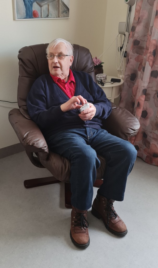 Ja men inte räckte ju detta!!! På kvällen ringer Pian och säger att mammas Kalle dött!!!! VA!!!!! Jag blev alldelens chockad! Jag ringde Kalle i förra veckan och frågade hur han mådde, ja säger han det är inte bra med mig. Han hade problem med kisseriet och var så himla trött sa han. Jag orkar ingenting, jag är trött hela tiden. Han skulle åka in till Övertorneå och ta lite prover sa han. Och det hade han väl gjort och hamnade i Kalix. Han hade fått urinvägsinfektion. Sen igår har de hittat honom på golvet på toaletten. Stackars lilla Kalle ❤ Han hade ju cancer och hade precis avslutat tuffa behandlingar så det tog nog på honom en hel del. Jag tror att han inte sa hur han egentligen mådde, jo i slutet började han göra det. Men han har nog mått dåligt betydligt längre än han sagt. Lilla Kalle, jag har svårt att fatta att det hänt! Fotot är taget i April i år uppe hos mamma, här mådde han ännu rätt bra. Han sa alltid – Nog var det tur Bitta att du hittade en fin liten gosse som jag ❤ De fick många år av lycka, resor, affärer, jobb, de älskade att jobba båda två. Nästan 40 år fick de tillsammans ❤