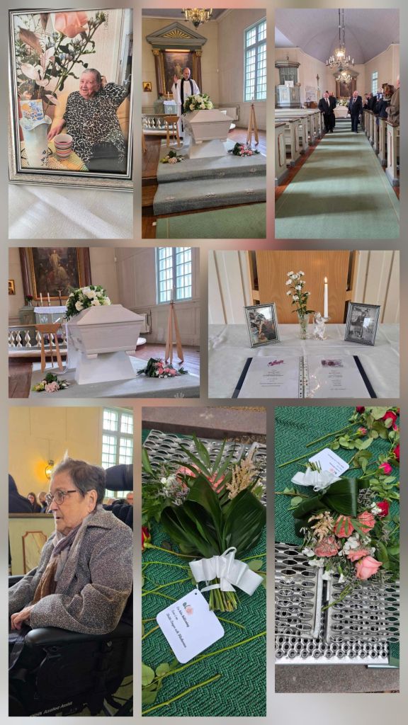 Mammas kusin Maj-Britt begravdes igår. Annika och Bejan var med henne dit. Vi 11 skulle de promenera från kyrkan i Seskis till församlingshemmet och just då öste det ner i Happis, tänkte hoppas det inte kommer lika mycket i Seskis men det hade det inte gjort, inget störtregn ialf. Det var fint sa Bejan, alla närmaste var där. Allt hade gått bra.